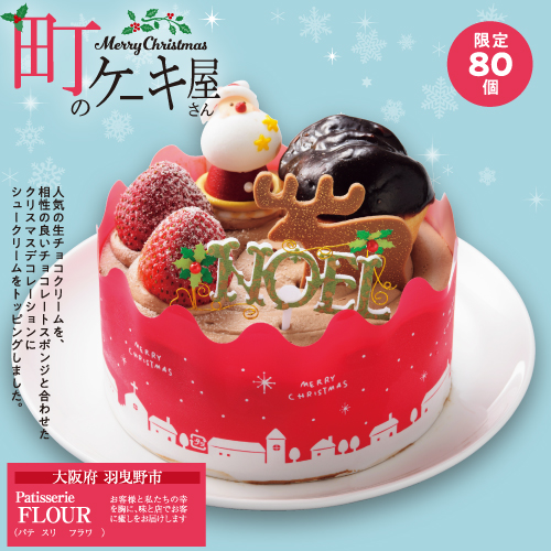 人気の生チョコクリームを、相性の良いチョコレートスポンジと合わせたクリスマスデコレーションにシュークリームをトッピングしました。