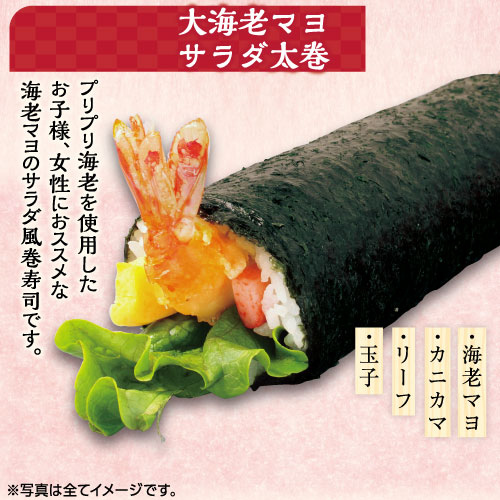プリプリ海老を使用したお子様、女性にオススメな海老マヨのサラダ風巻寿司です。