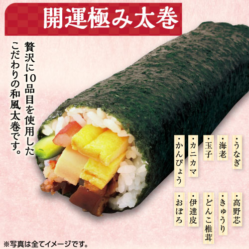 贅沢に10品目の具材を使用したこだわりの和風太巻です。