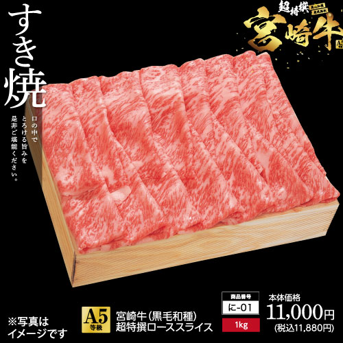 に-01【家庭用/パックトレイ入り】宮崎牛(黒毛和種)超特選ローススライス A5等級 1kg