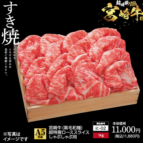 に-02【家庭用/パックトレイ入り】宮崎牛(黒毛和種)超特選ローススライスしゃぶしゃぶ用 A5等級 1kg