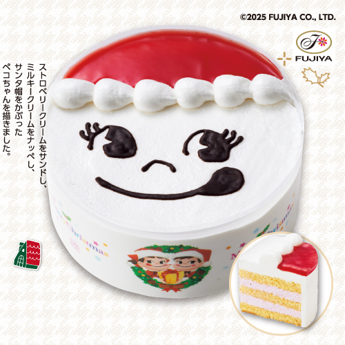 ストロベリークリームをサンドし、ミルキークリームをナッぺし、サンタ帽をかぶったペコちゃんを描きました。